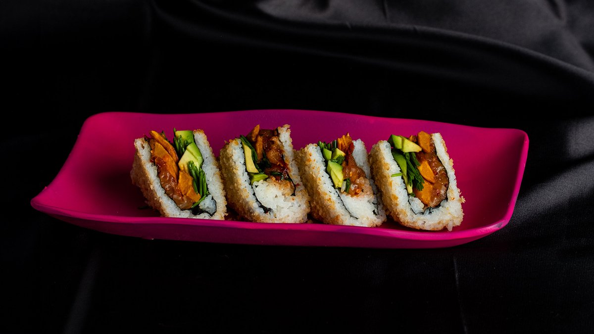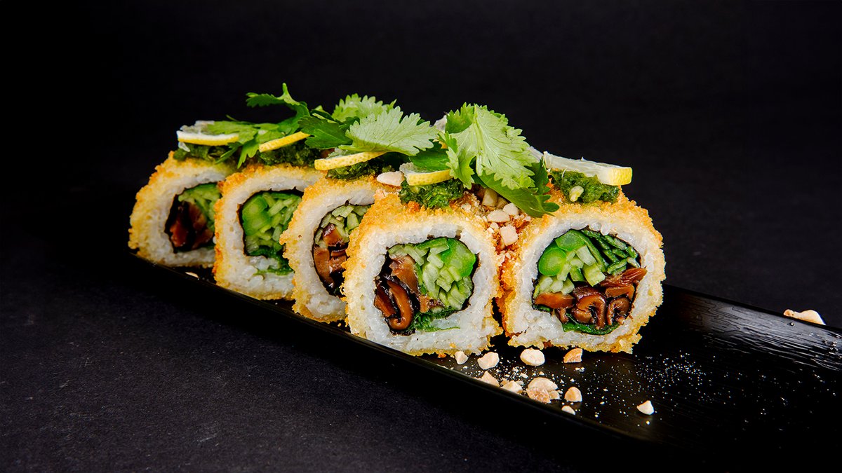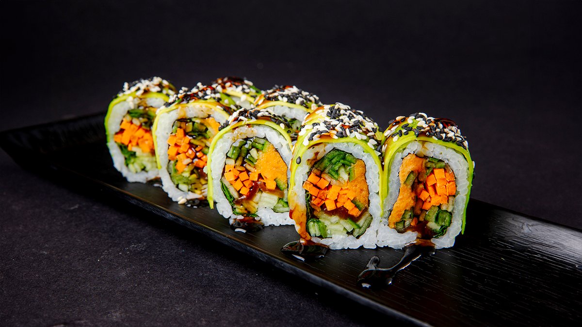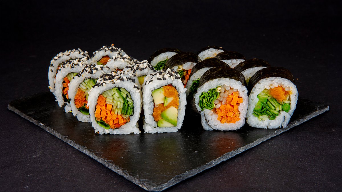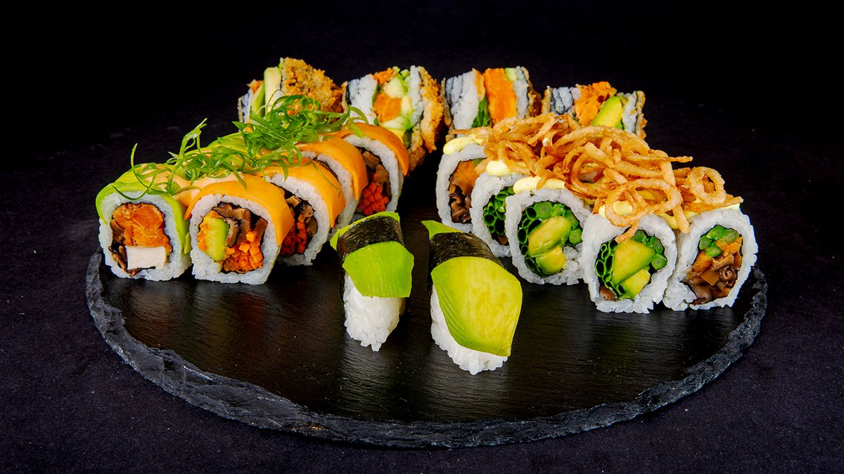 אינסיידאאוט אספרגוס, אבוקדו ועירית ברוטב יוזו ובצל פריך 4 יח׳, אינסיידאאוט אספרגוס, בטטה מאודה ושיטאקה ברוטב יוזו ובצל פריך 4 יח׳, אינסיידאאוט בטטה טמפורה, טופו ושיטאקה במעטפת אבוקדו, ספייסי מיונז ובצל ירוק 4 יח׳, אינסייד אאוט אבוקדו, גזר ושיטאקה במעטפת באאה, ספייסי מיונז ובצל ירוק 4 יח׳, סנדוויץ׳ אבוקדו, בטטה בטמפורה ועירית בטמפורה ופנקו 4 יח׳, ניגירי אבוקדו 2 יח׳