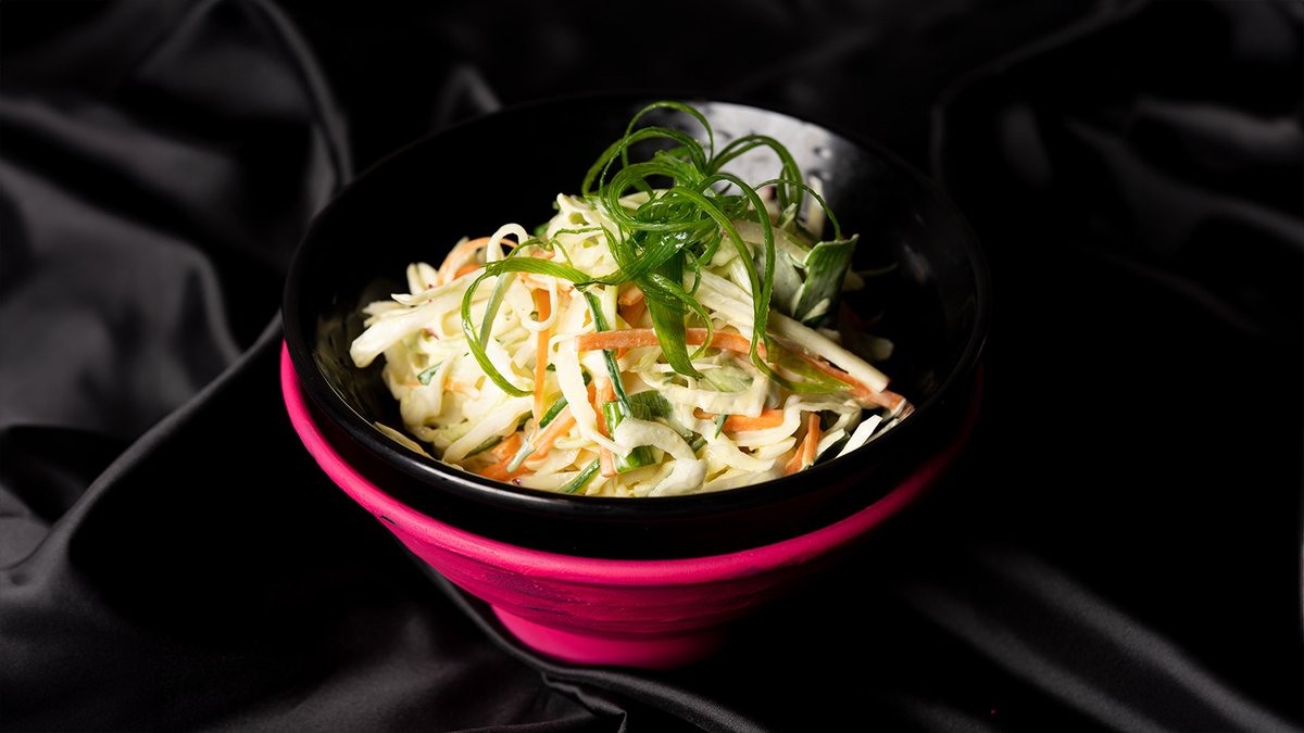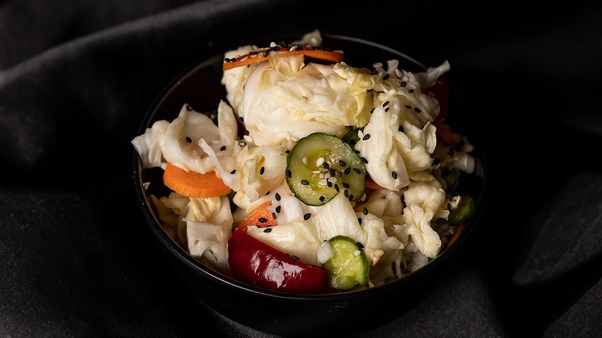 כרוב, גזר, מלפפון, צנון ובצל ירוק ברוטב יוזו ושומשום