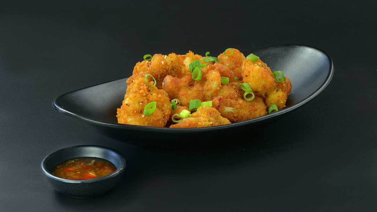 פרחי כרובית בתבלינים ופנקו עם רוטב צ׳ילי נענע
