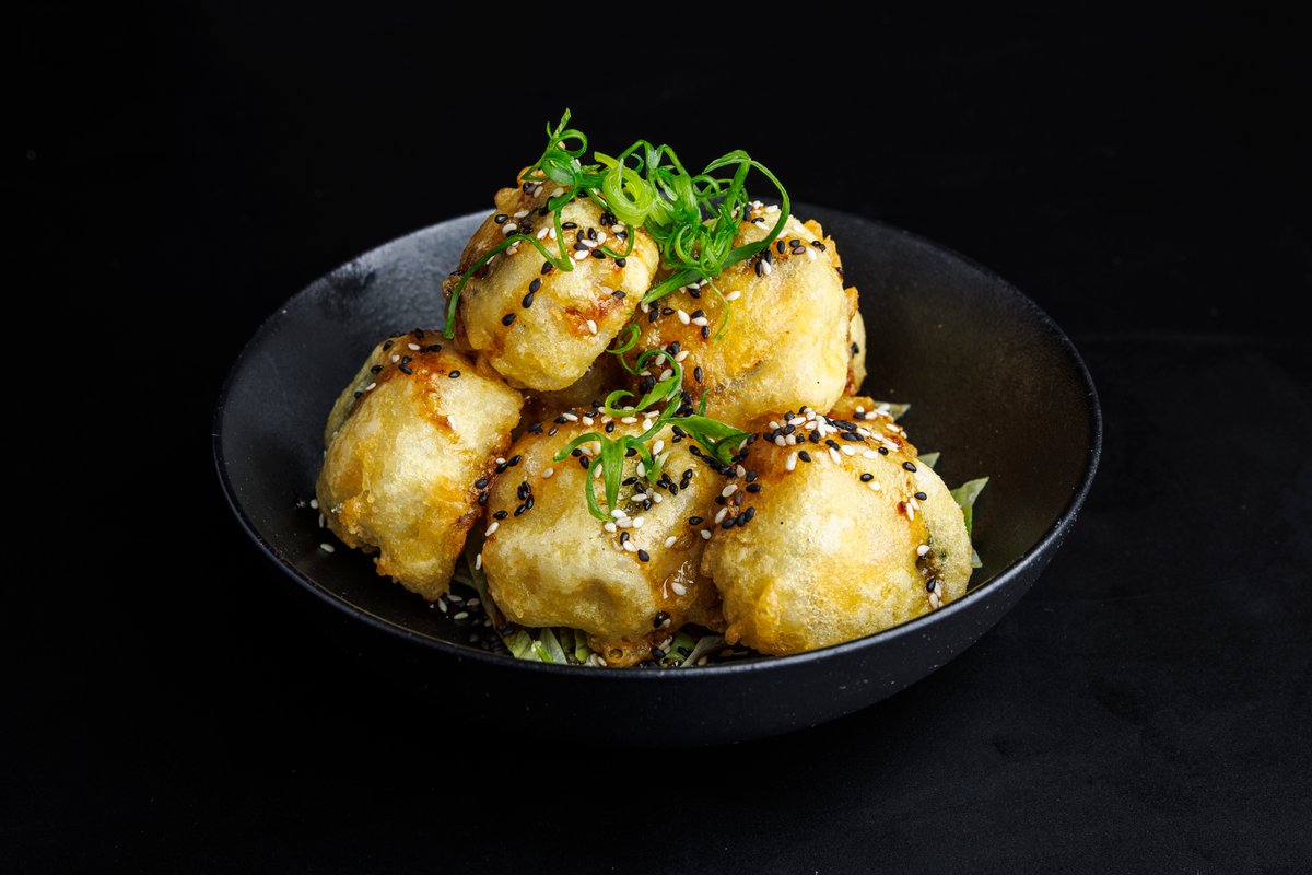 6 יח’ שרימפס בטמפורה ופנקו. מוגש עם איולי יוזו