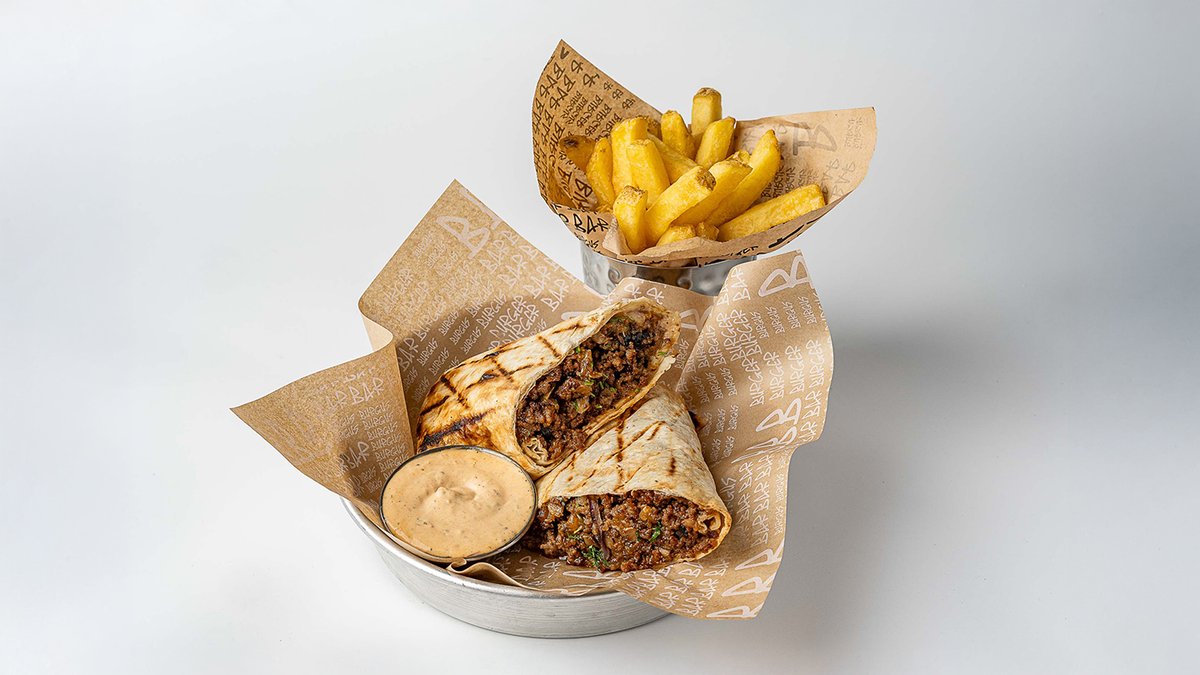 טורטייה מגולגלת עם רצועות אנטריקוט, גוואקמולי, בצל סגול, ארוגולה, פרוסות מלפפון כבוש, בצל פריך, בצל צרוב, איולי צ'יפוטלה וצ'ימיצ'ורי. מוגש עם תוספת צד לבחירה ואיולי צ'יפוטלה בצד