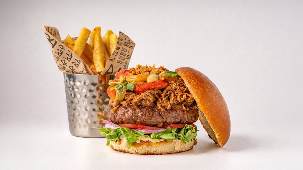 המבורגר בקר, מיקס בשרים של קורנדביף, רצועות אנטריקוט ובצל צרוב, איולי חרדל. מוגש עם רוטב ציידים בשרי בצד, לטובת טבילה של ההמבורגר ברוטב, להעצמת הטעם- המבורגר לקרניבורים אמיתיים. אלרגנים- סלרי, חרדל, ביצים, אגוזים (בוטנים, שקד, קוקוס, לוז, צנובר, אגוז מלך) שומשום, סויה, עלול להכיל דגים ברוטב