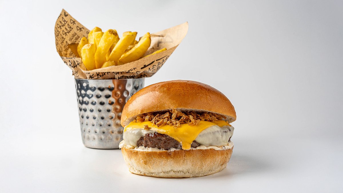 בשר טרי ואיכותי טחון במקום, מגיע במידת עשייה MW ומוגש בתוספת צ‘יפס