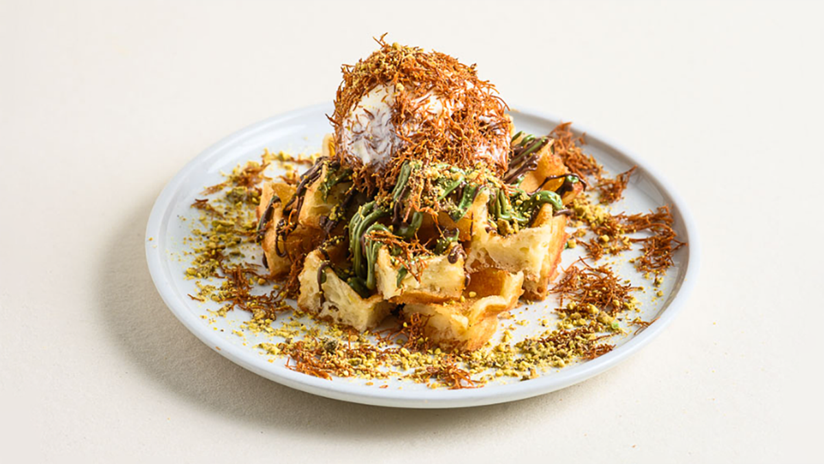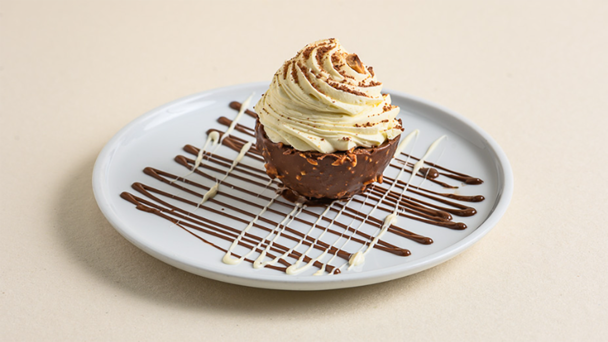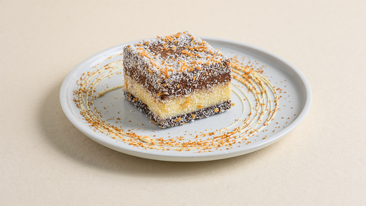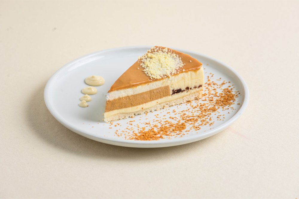 פקאן סיני, שוקולד לבן עם נגיעות וניל, שמנת, קוקוס וריבת חלב.