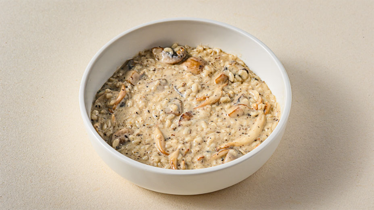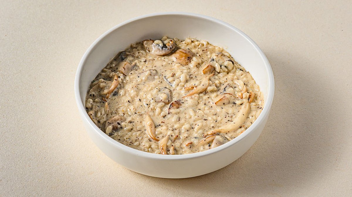 אורז ארבוריו קרמי, חמאה, שמנת, פרמזן, פטריות שמפיניון ושימאגי .