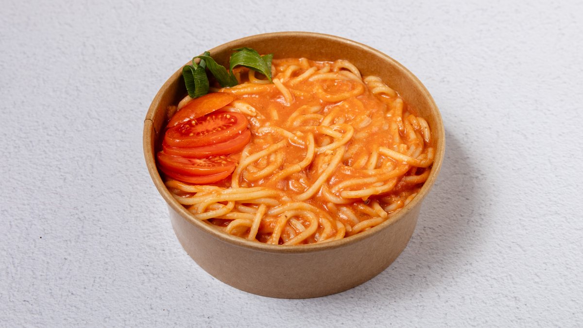 ספגטי ברוטב שמנת ורוטב עגבניות עם חמאה ופרמז'ן מגורדת מעל