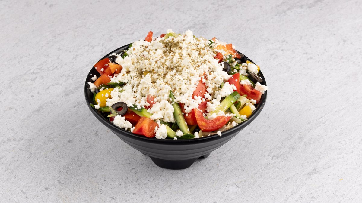 חסה, מלפפון, עגבניה, פלפלים, גבינה בולגרית ואורגנו
