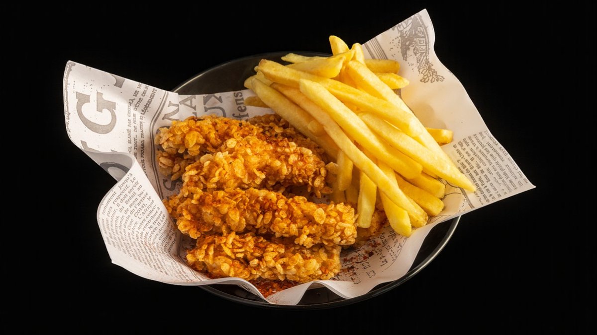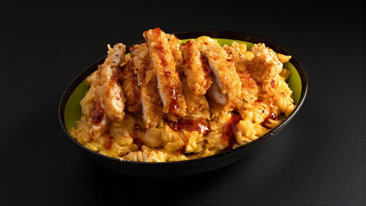 מאק אנד צ׳יז קריספי צ׳יקן מוגש עם צ'יפס