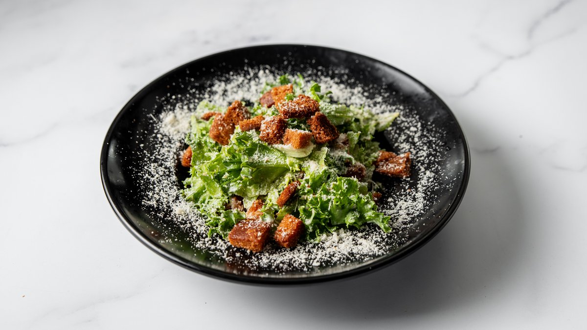 חסה לאליק, קרוטונים, רוטב קיסר ופרמז׳ן