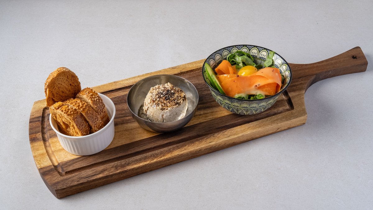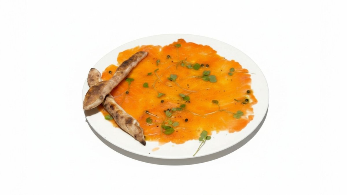 קרפצ'יו סלמון עם רוטב פסיפלורה וטוסט