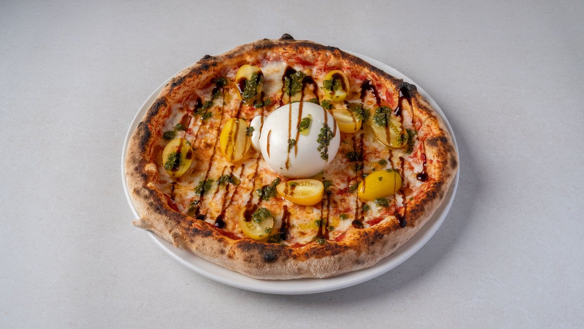 רוטב עגבניות, מוצרלה, עגבניות שרי, רוקט, בוראטה, פסטו, בלסמי