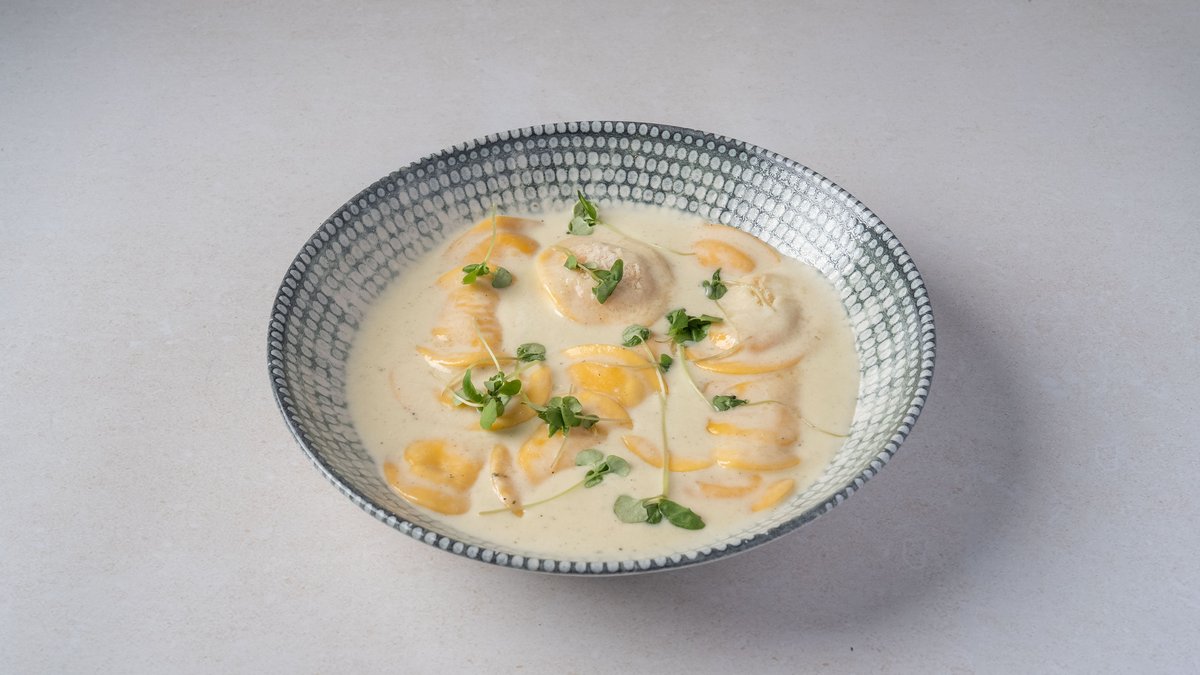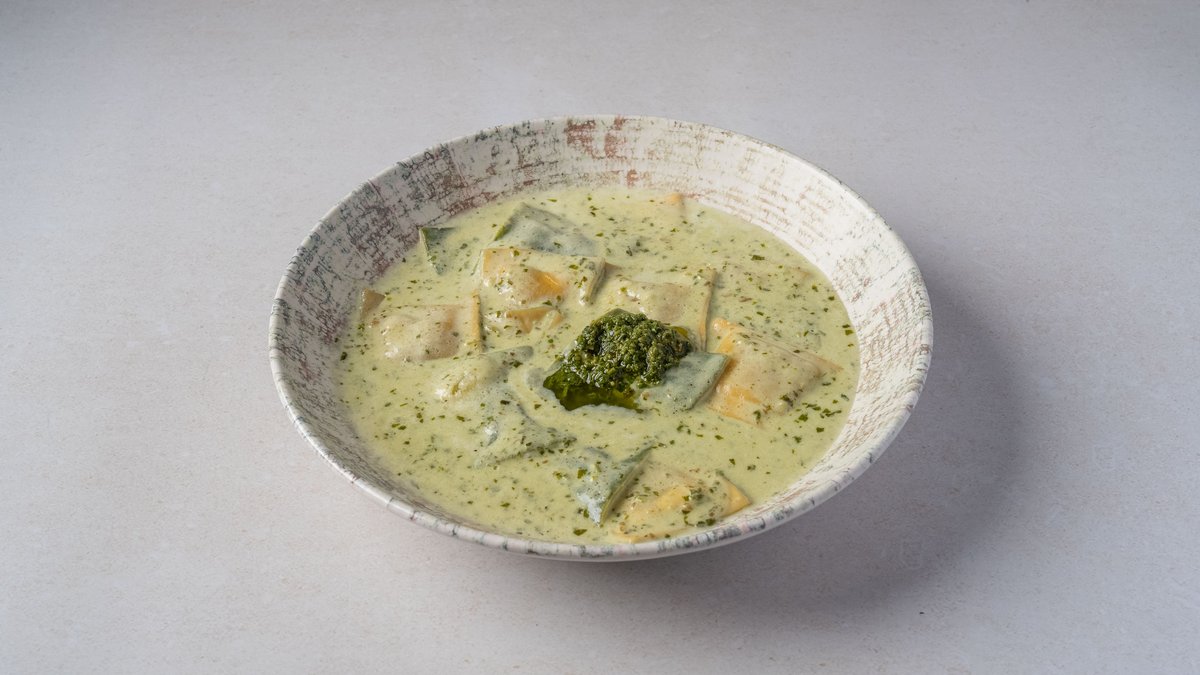 רביולי ריקוטה תרד, שמנת, פרמזן