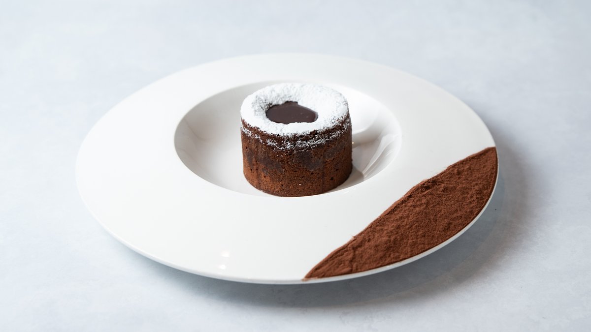 פונדנט שוקולד בלב רך, גלידת וניל, קצפת