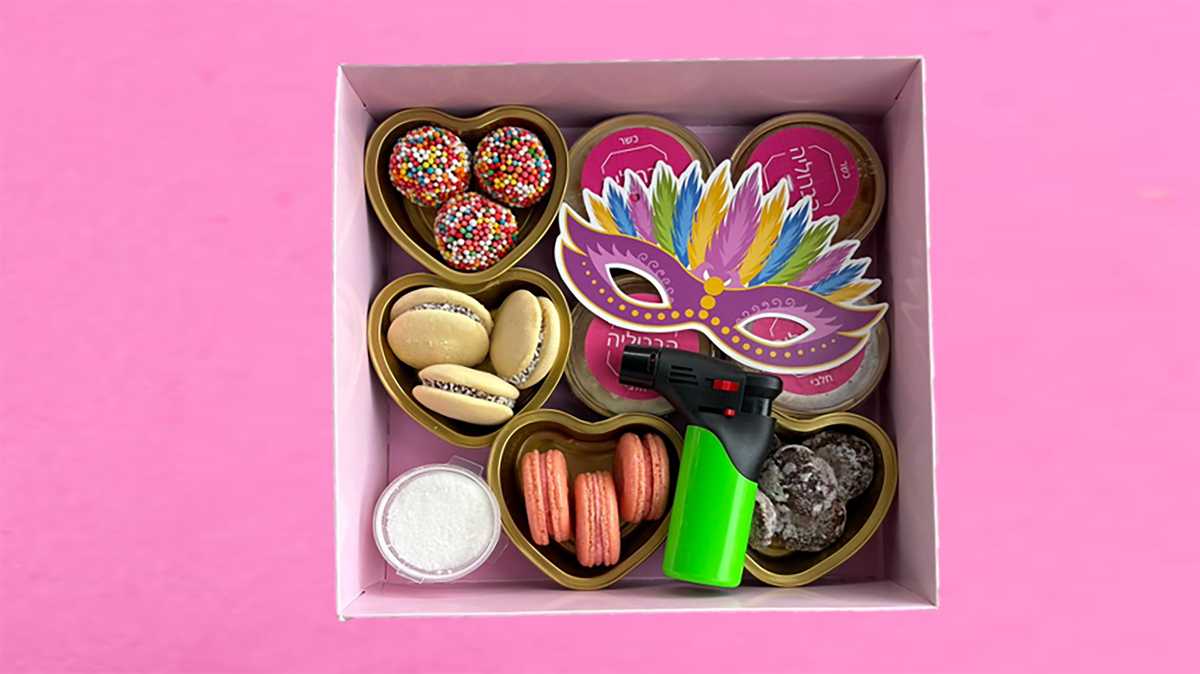 המחיר כולל: 2 קרם ברולה גודל אישי (100 מל) מיני ברנר רב שימושי תוספת+סוכר +הסבר איך לשרוף 5 עוגיות שוקולד 4 אזוני המן לבחירה 3 מקרונים תות 3 כדורי שוקולד