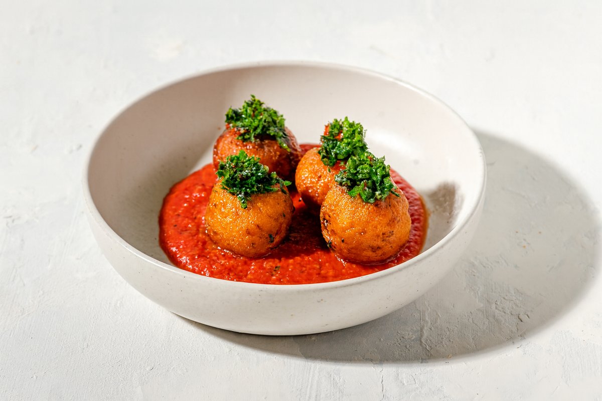 כדורי ריזוטו וגבינות על רוטב עגבניות חם וסלסה ורדה אלרגנים: גלוטן, לקטוז וסויה