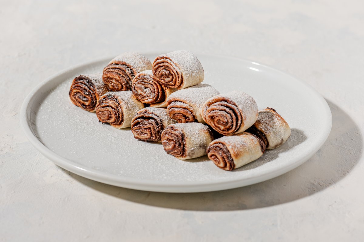 גלגולי מאפה בצק שמרים דקיק ופריך מלאים בקרם לוהט של שוקולד ואגוזי לוז / עוגיות קרמל