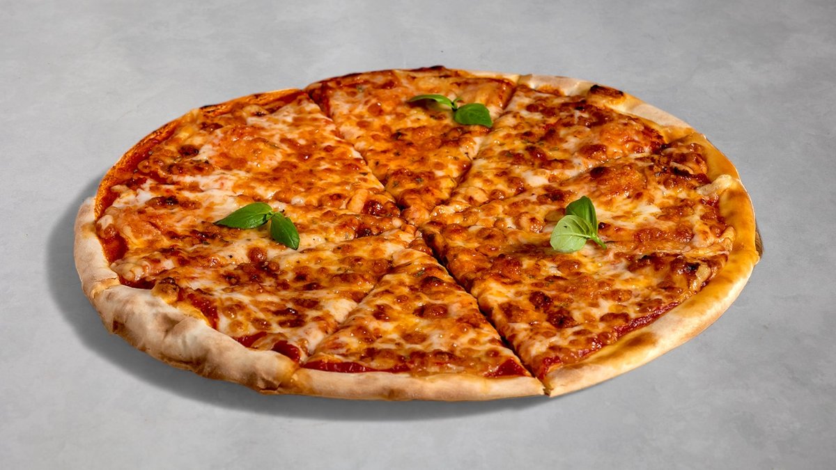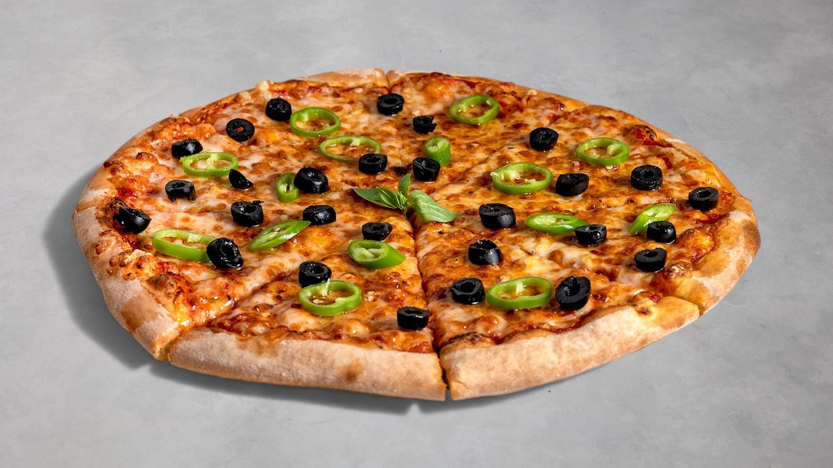 רוטב עגבניות, גבינה, מוצרלה, פטריות, בצל ופלפל ירוק