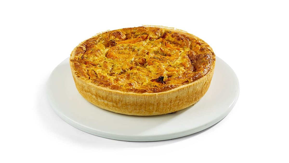 קיש בטטה, אגוזי מלך וגבינות מוגש עם סלט אישי ורוטב לבחירה