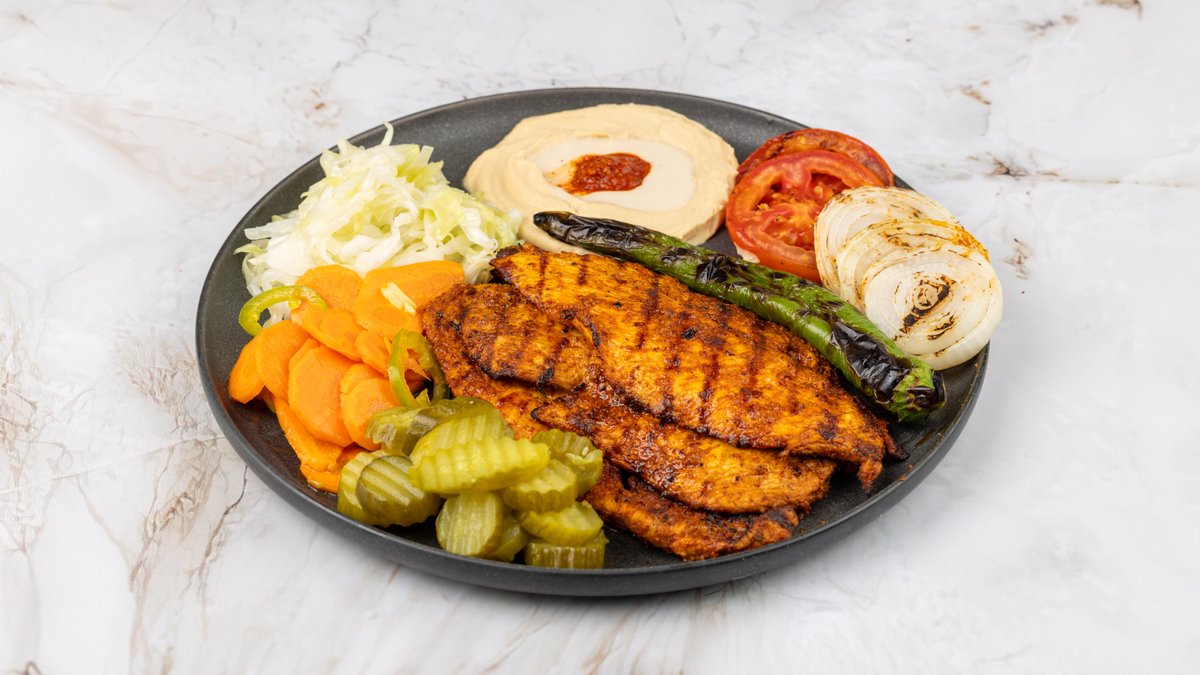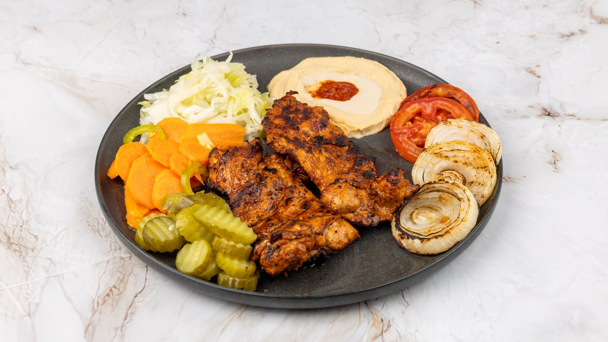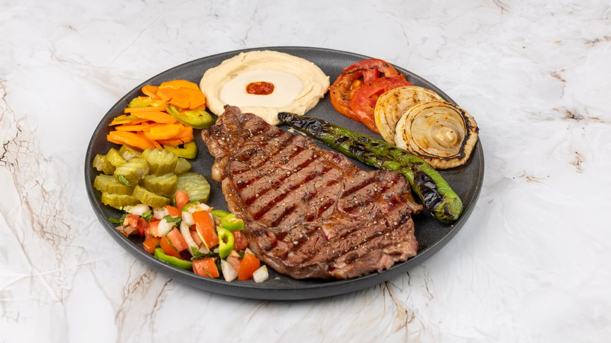 מוגש עם סלטים, ממרחים ורטבים לבחירה