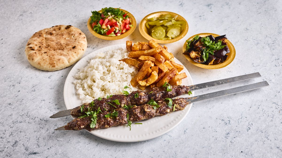 בחרו סוג שווארמה | מוגש עם 2 תוספות, 3 סלטים ופיתה
