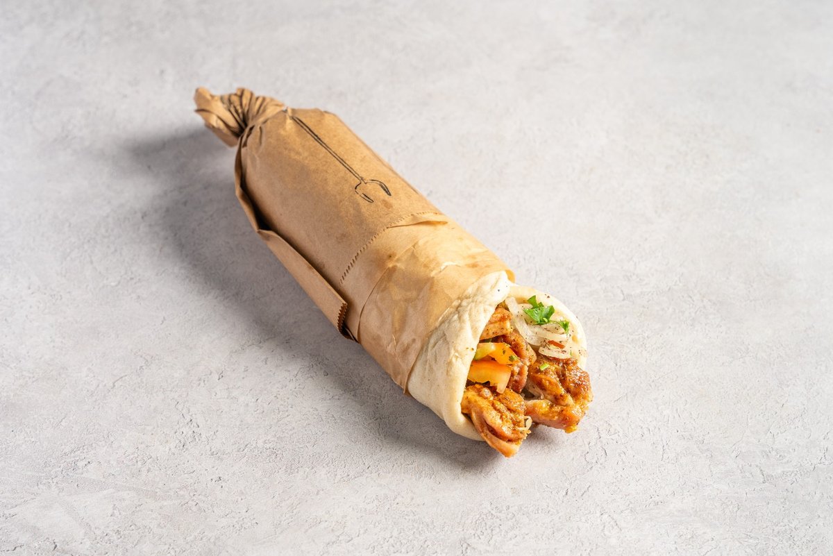 שווארמה הודו בפיתה עם סלטים וממרחים לבחירה