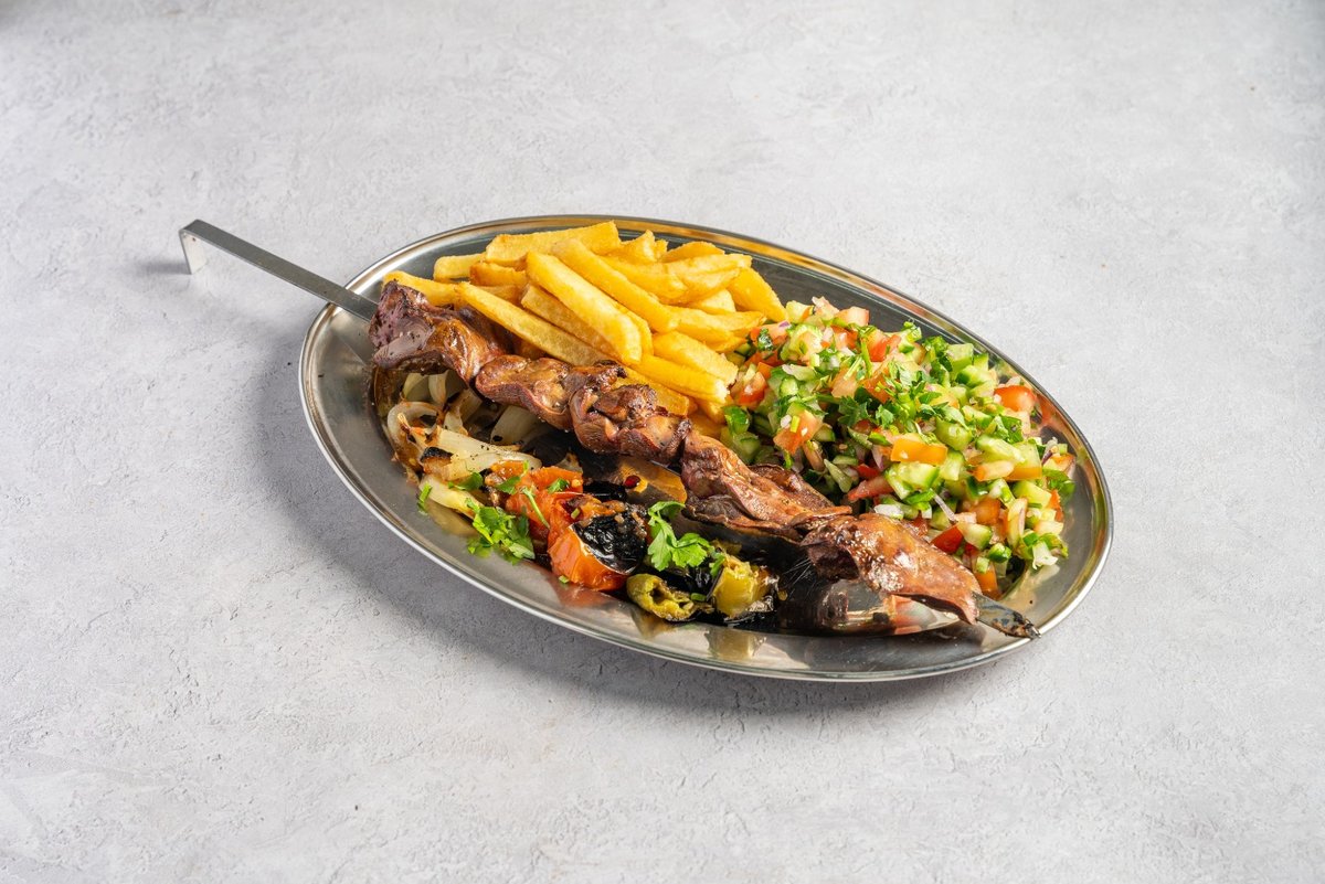 שווארמה מיקס עם סלטים וממרחים לבחירה