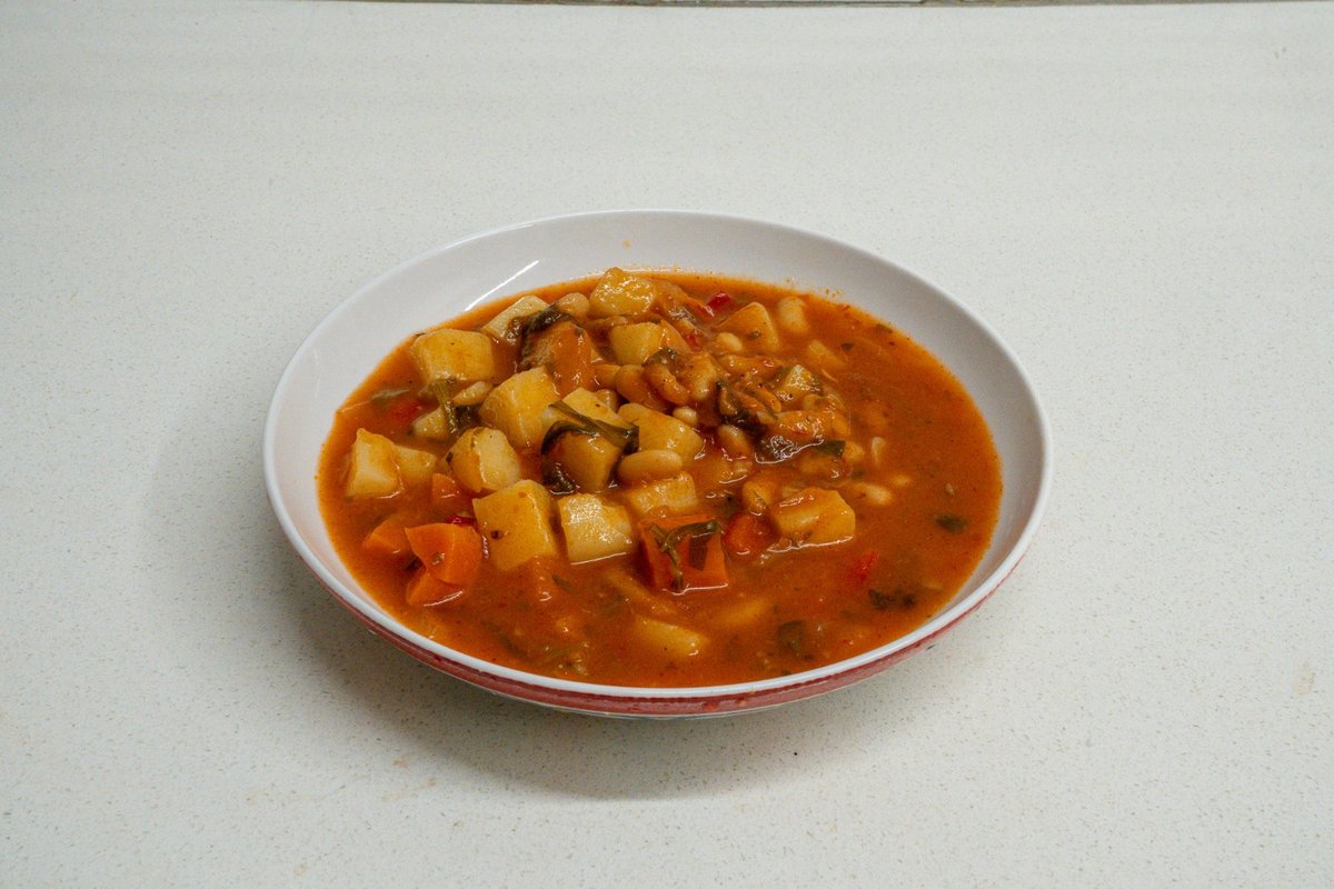 תבשיל סמיך ומזין של שעועית לבנה, בצל, גזר, תפוח אדמה, רסק עגבניות ותיבול בסגנון ביתי. מבושל באיטיות עד שהכול נמס ונשזר יחד – מרק עמוק, כפרי, משביע ומנחם