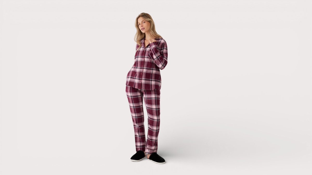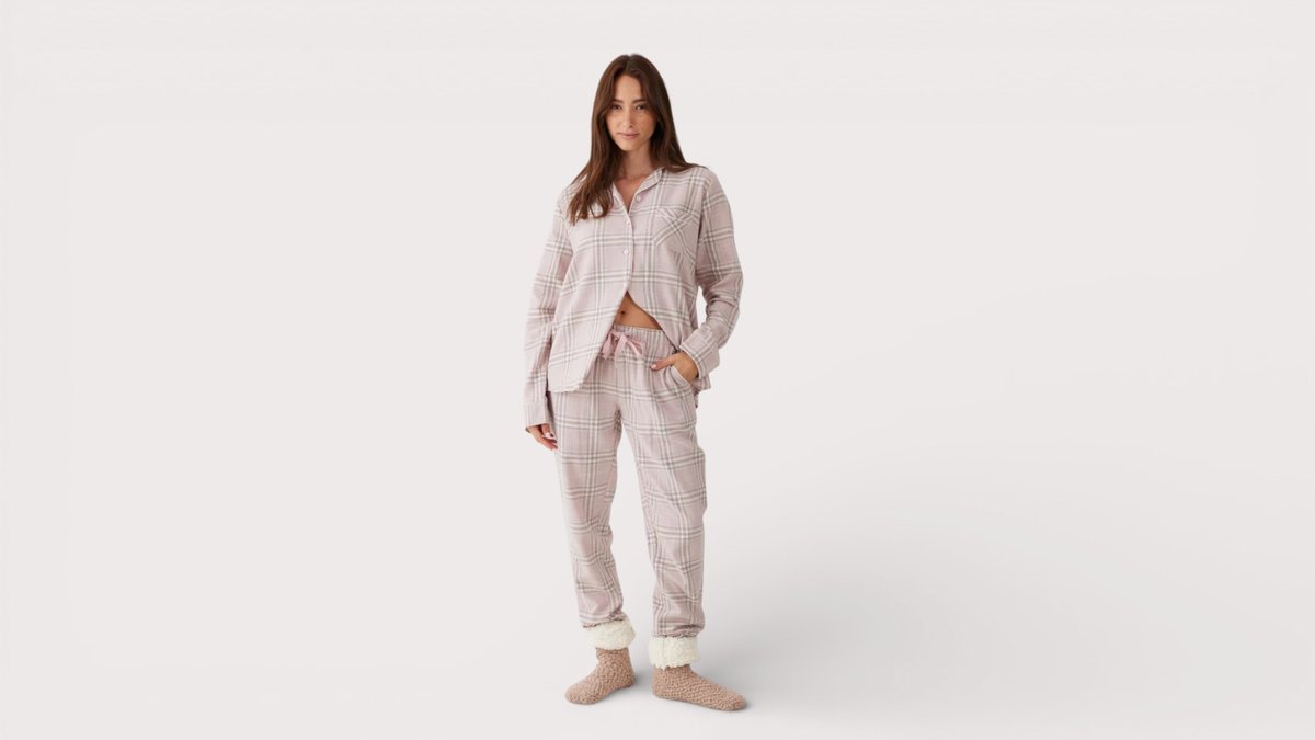 פיג'מת פלנל מכופתרת | ורוד מעושן