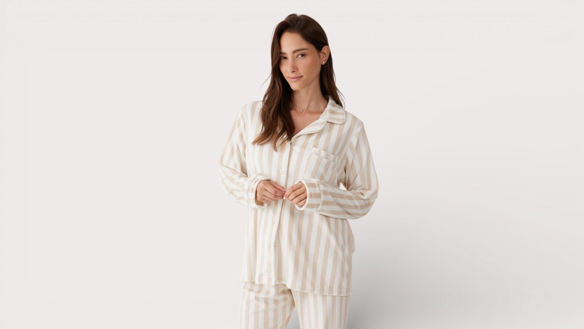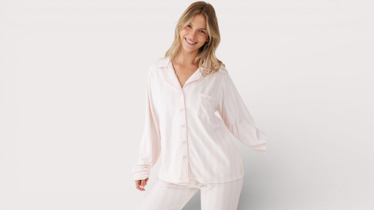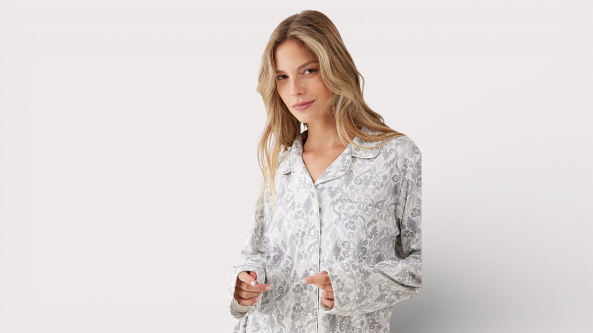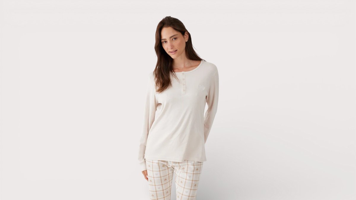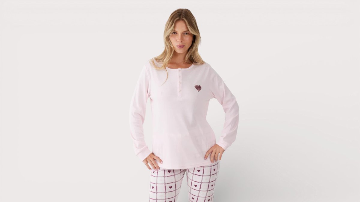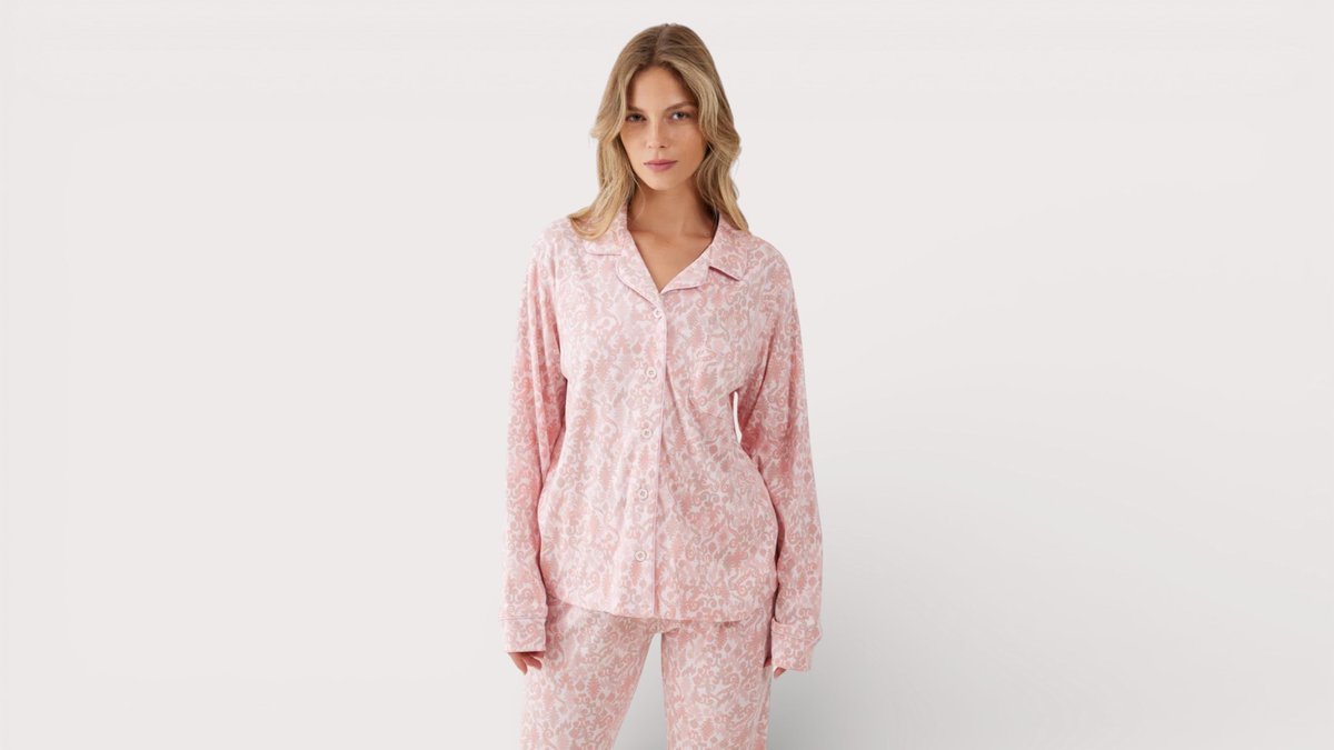 פיג'מה מכופתרת אינטרלוק | ורוד