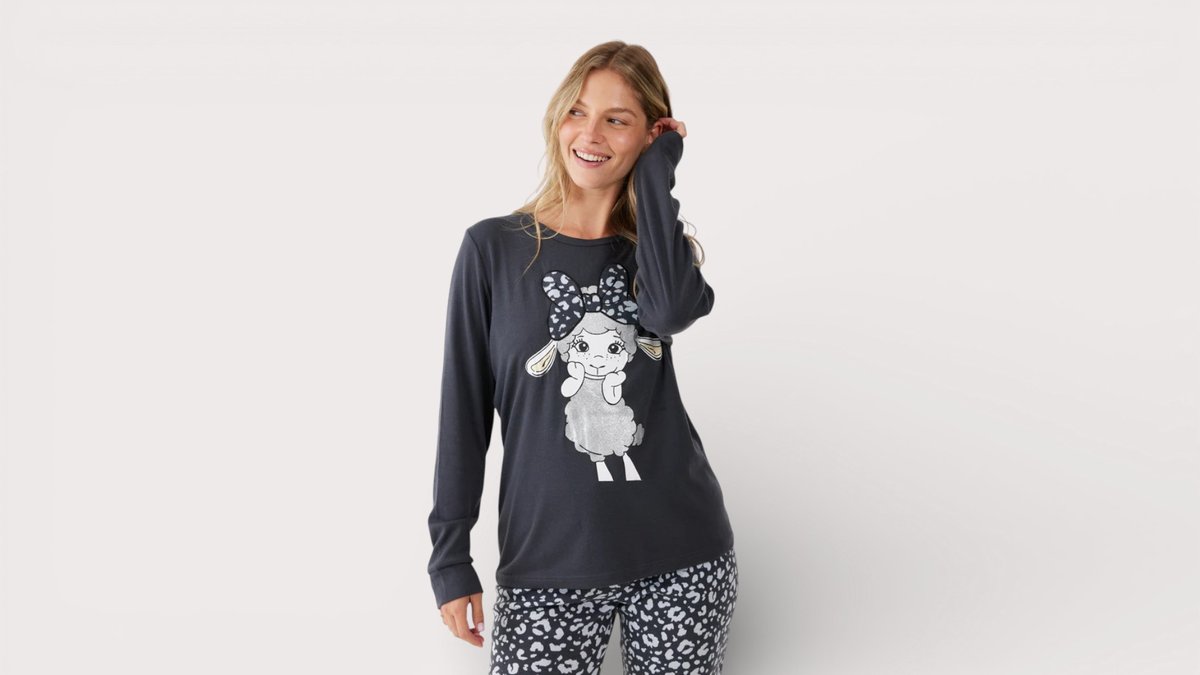 פיג'מת פיפה אינטרלוק | אפור כהה