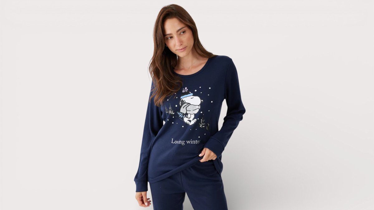 פיג'מה סנופי אינטרלוק | כחול נייבי