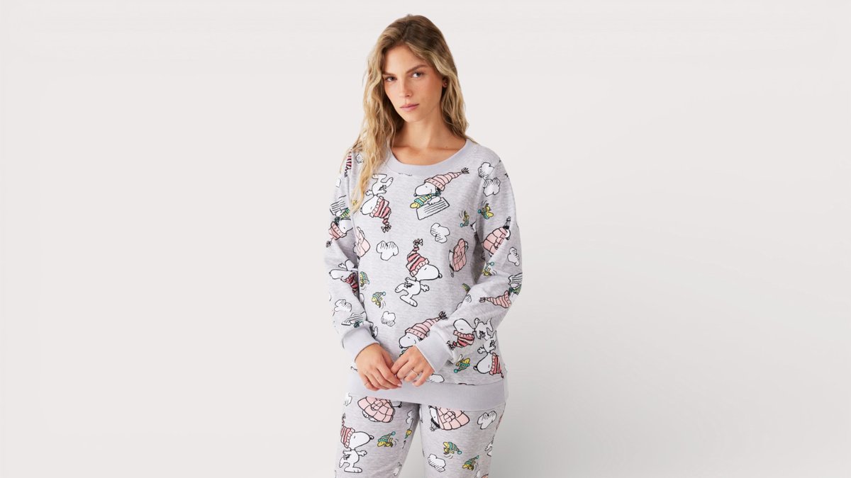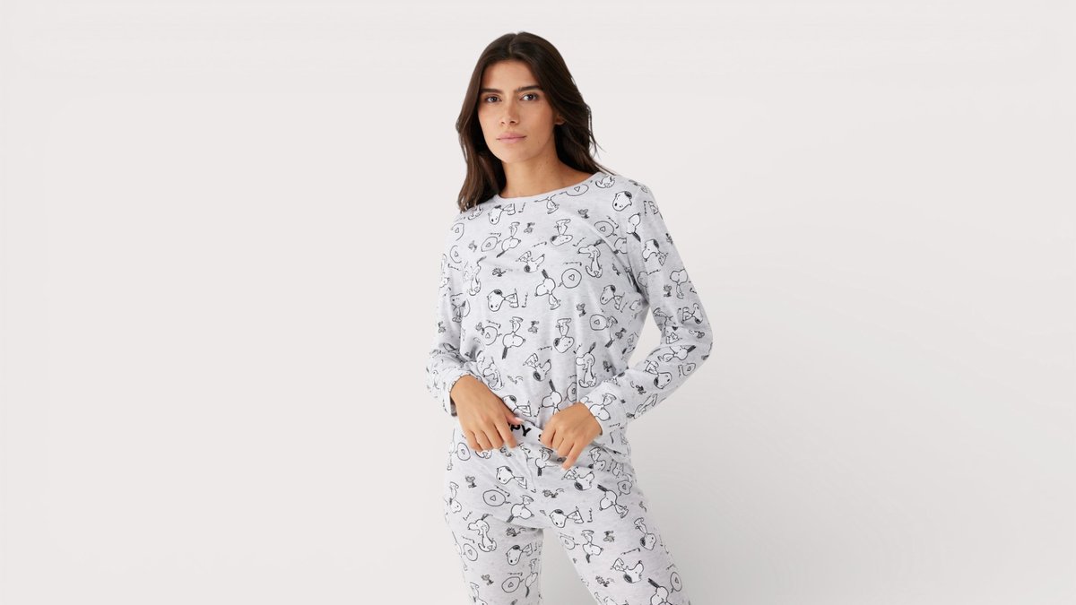 פיג'מה סנופי אינטרלוק | אפור מלאנז