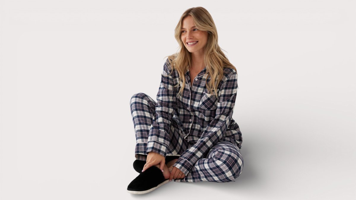 פיג'מת פלנל מכופתרת | כחול נייבי