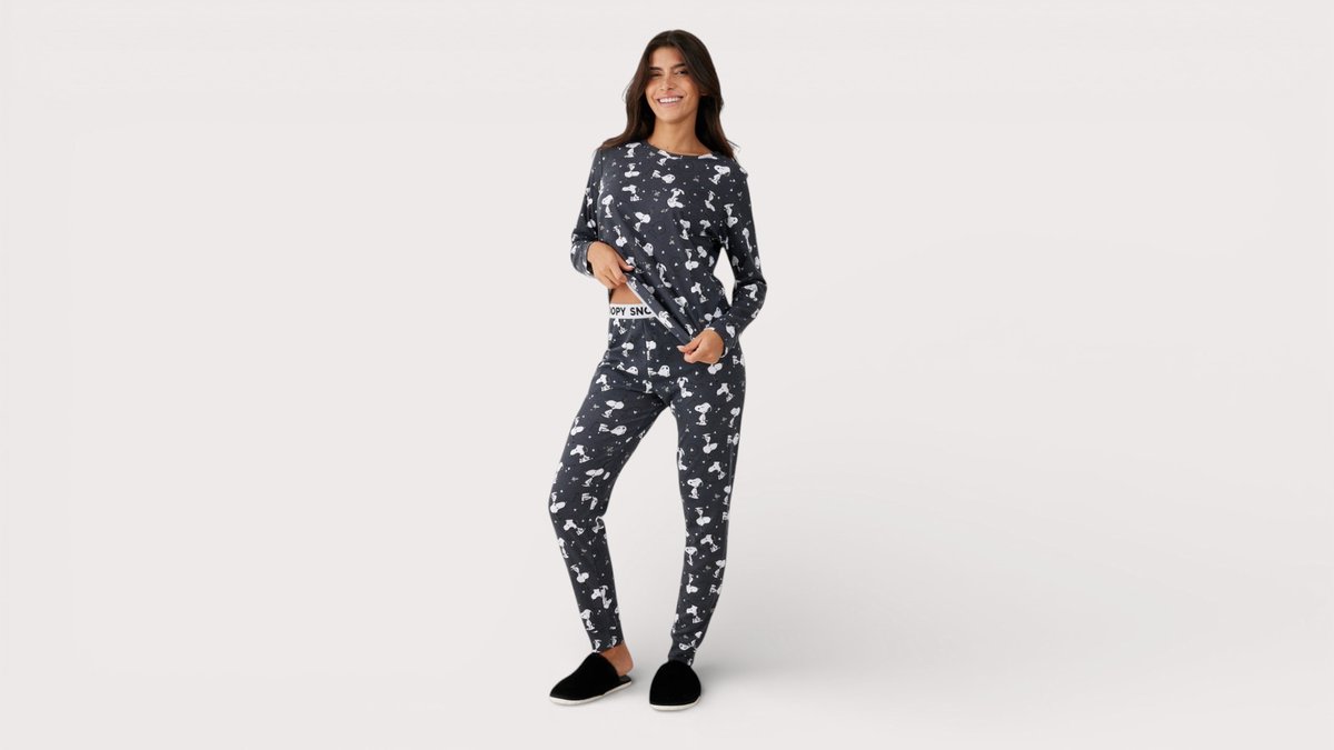 פיג'מה סנופי אינטרלוק | אפור כהה