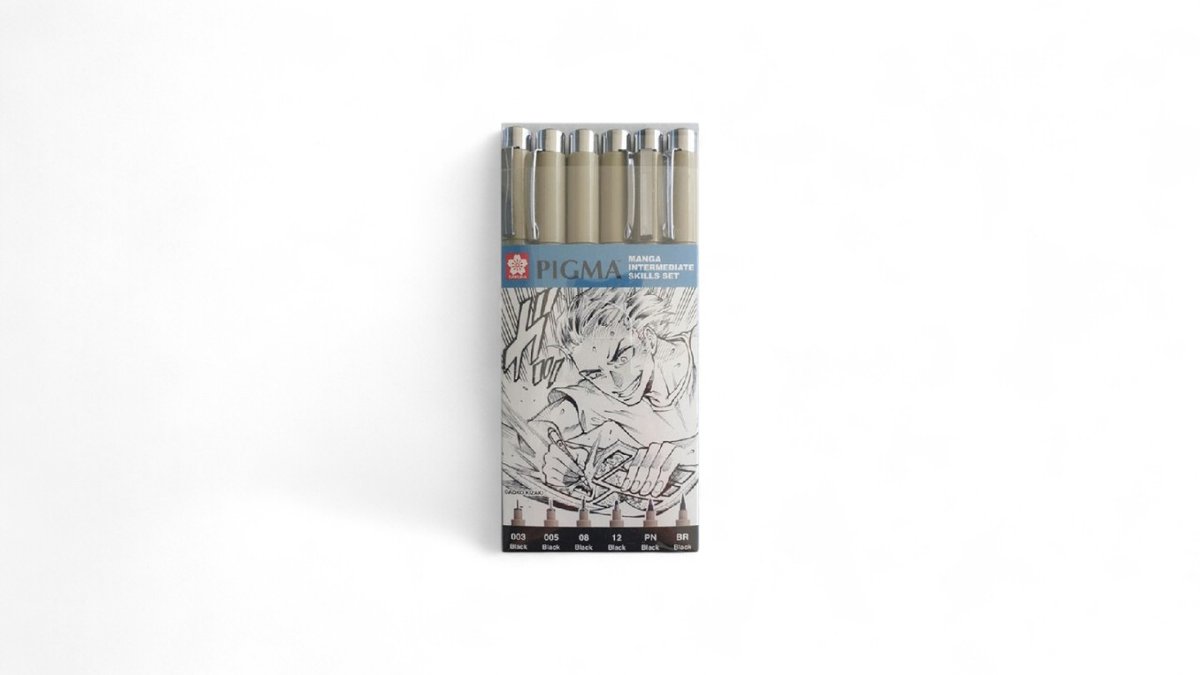 סט רפידוגרף חפ 6יח שחור עם טוש מכחול סקורה pigma manga intermediate skills set 6 pcs sakura