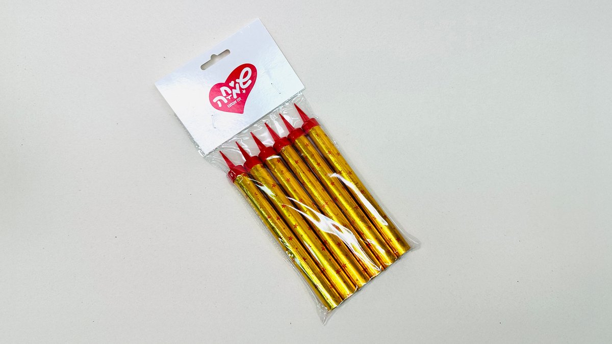 נר מספר 6 | זהב נצנץ | קטן 9 ס"מ