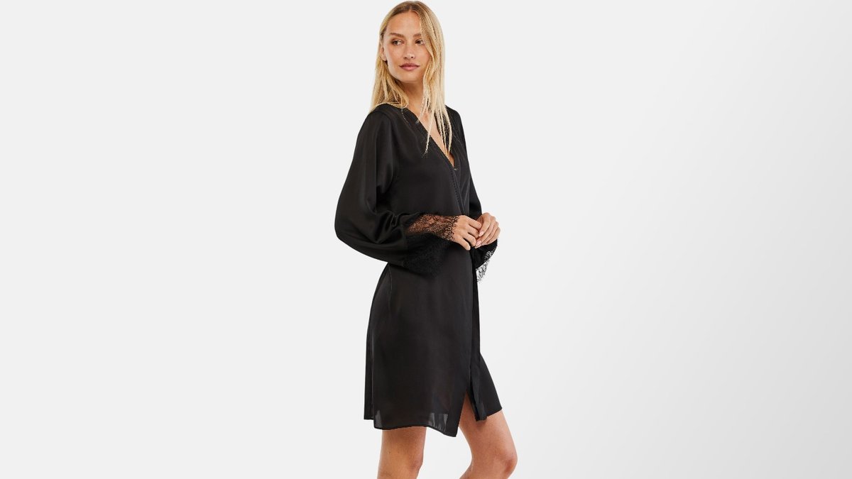 חלוק סאטן גב תחרה | שחור