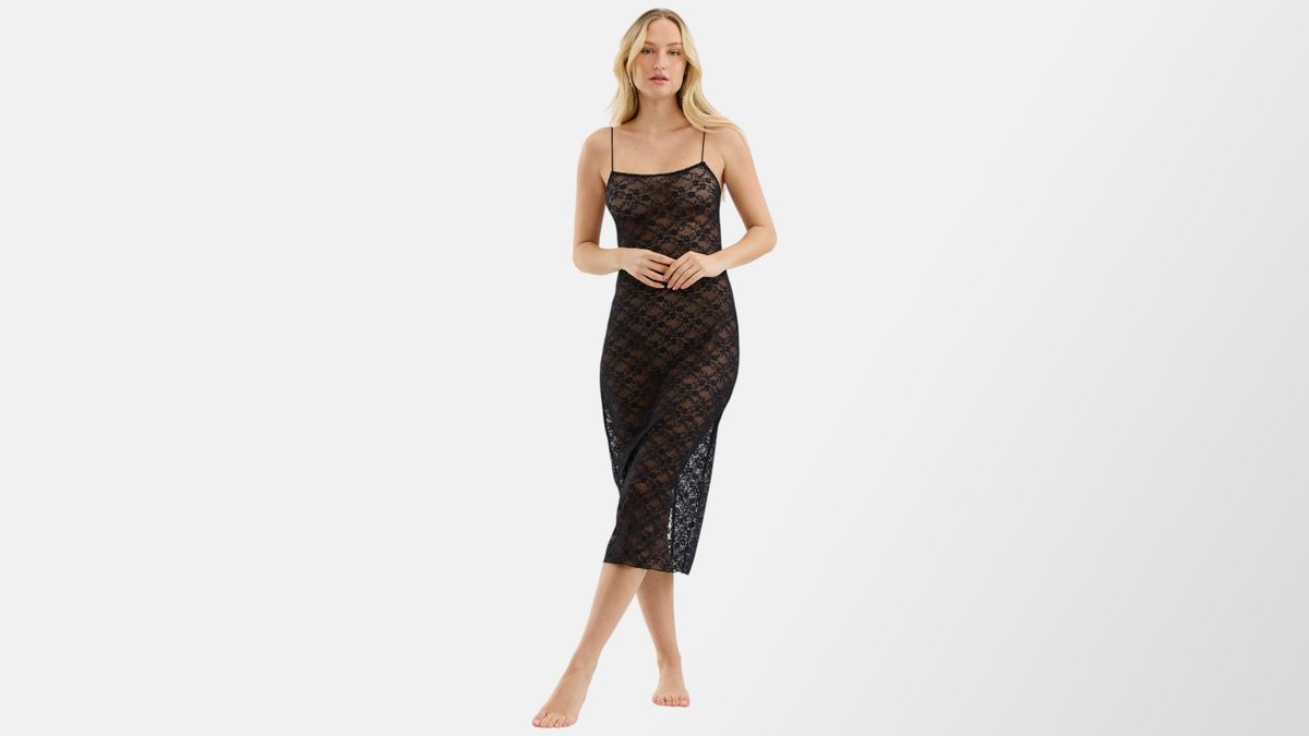 כותונת לילה תחרה | שחור