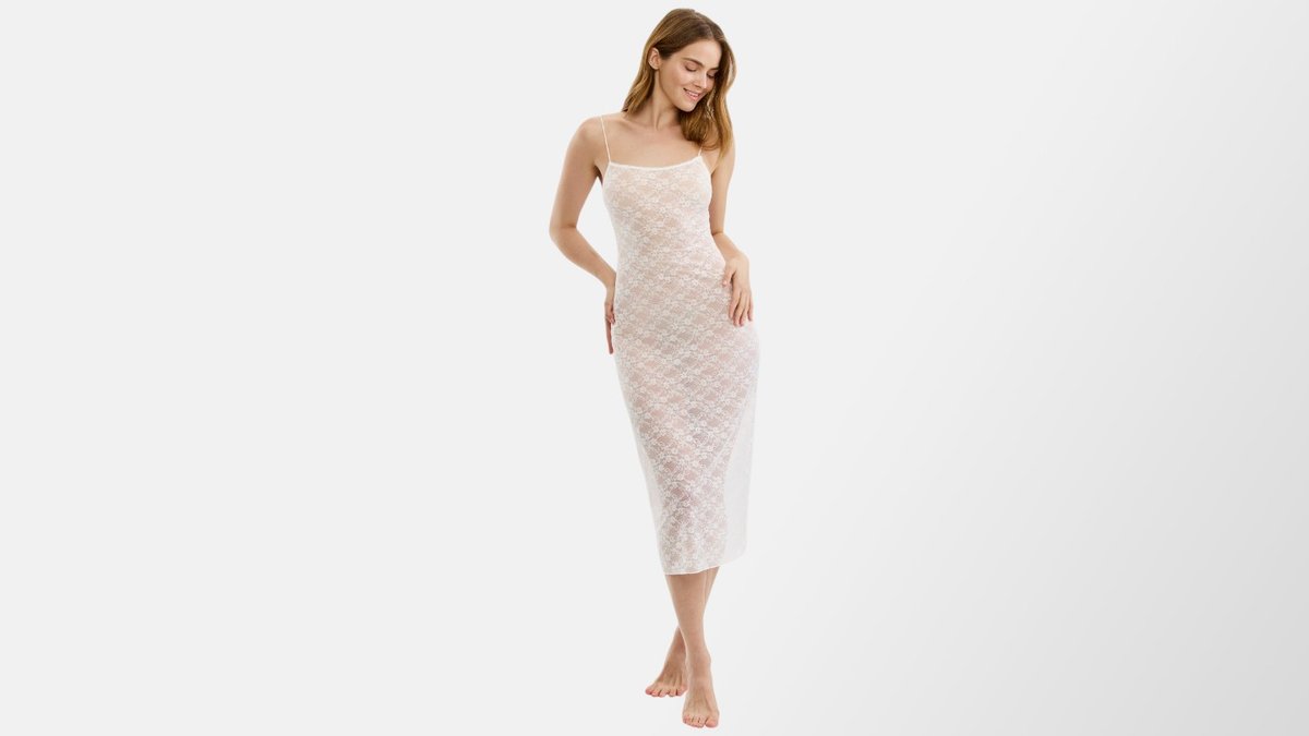 כותונת לילה תחרה | שמנת