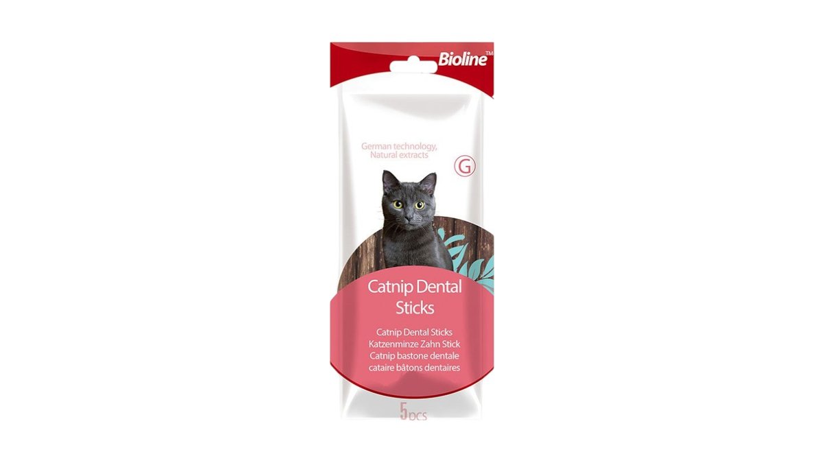 ביוליין Bioline חטיף לחתול מקלוני קטניפ דנטליים 5 יחידות