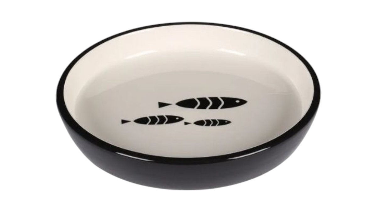 פלמינגו Flamingo קערה קרמית שטוחה עם סרדינים שחור לבן