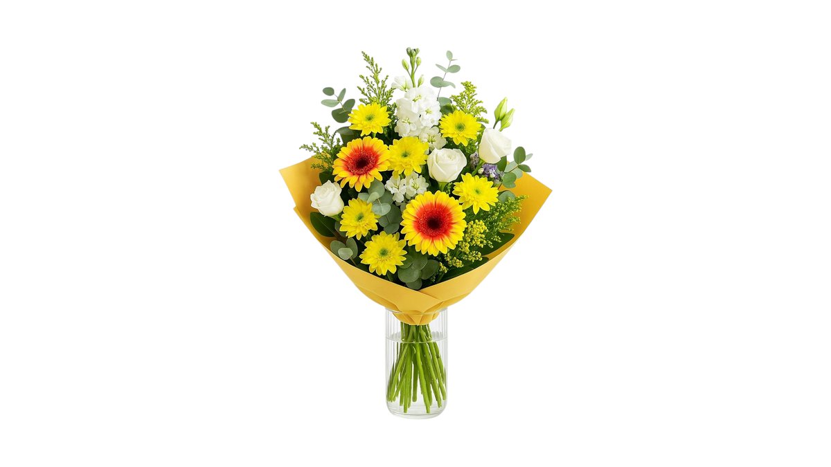 התמונה להמחשה בלבד | חלק מהפרחים עשויים להגיע סגורים מפאת טריותם | ייתכנו שינויים בסוגי הפרחים בהתאם למלאי הקיים ועונות השנה | כל הזרים מגיעים בגובה של עד 38 ס"מ | הזר מגיע ללא אגרטל אלא אם צויין אחרת