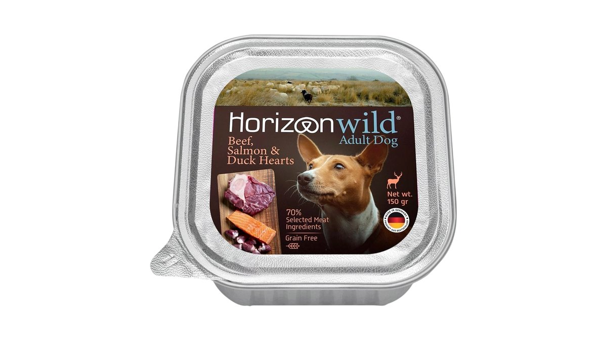 הורייזן בקר,סלמון ולבבות ברווז לכלב 150 גרם