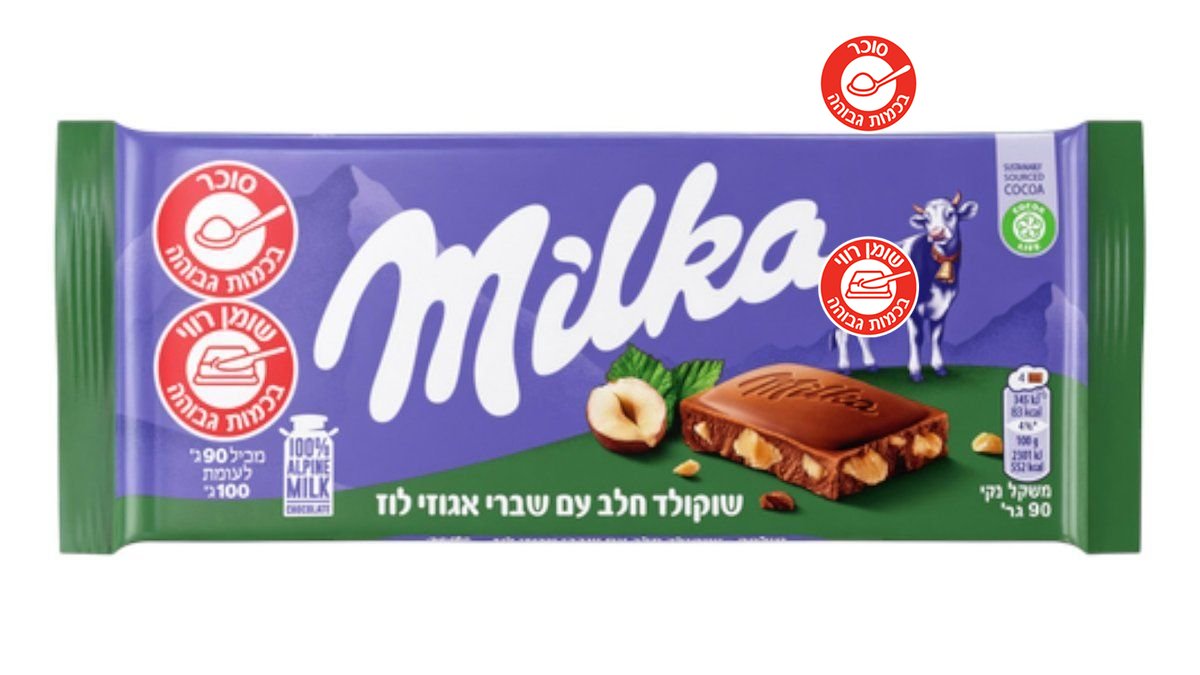 מילקה שוקולד חלב עם אגוזים 90 ג