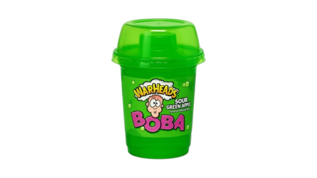 וורהאדס משקה עם כדורי בובה בכוס עם קש בטעם תפוח עץ ירוק