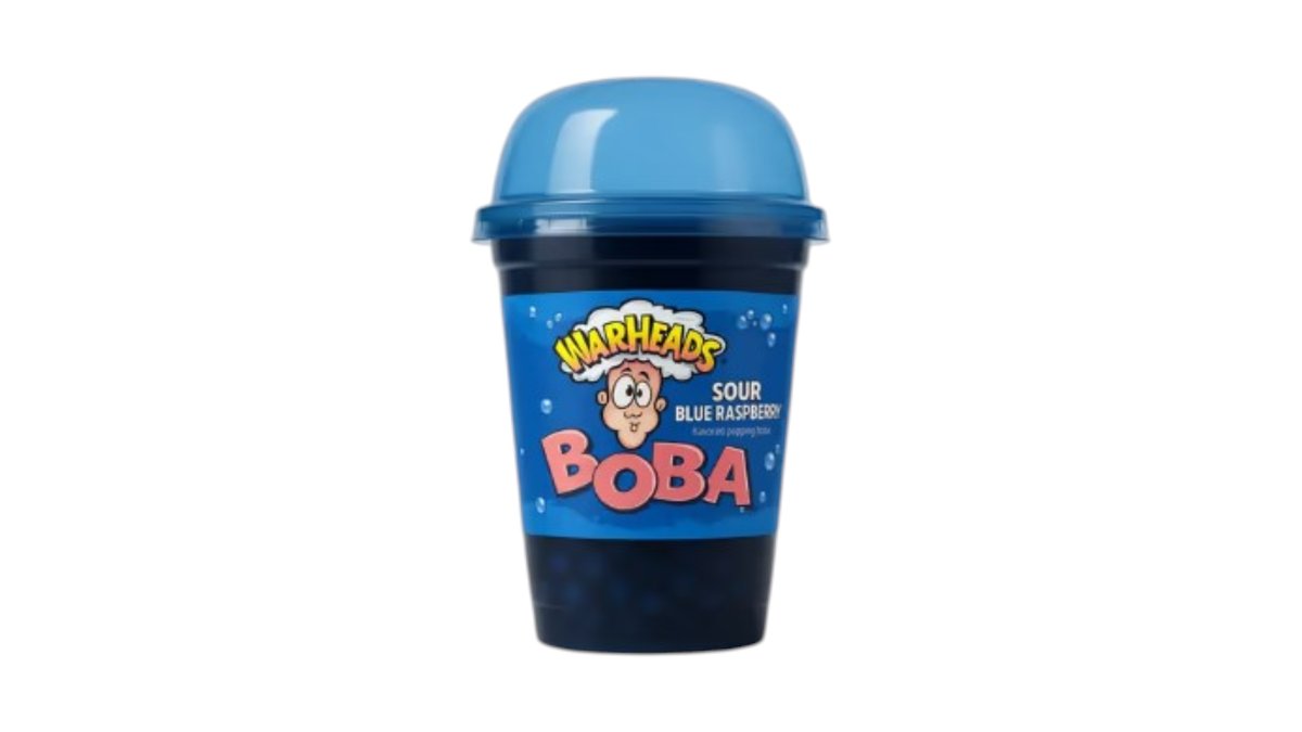 וורהאדס משקה עם כדורי בובה בכוס עם קש בטעם אוכמניות