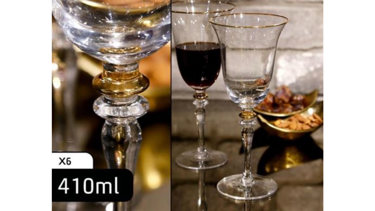 סט “אורליין” – כוסות יוקרתיות מקריסטל עם עיטורי זהב | סט כוסות יין 410 מ״ל