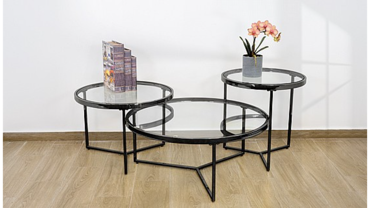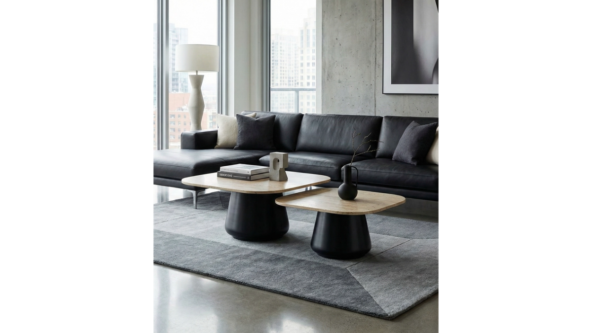 סט שולחנות איימורפי Wave Duo – עיצוב מודרני עם נוכחות טבעית | שחור מט