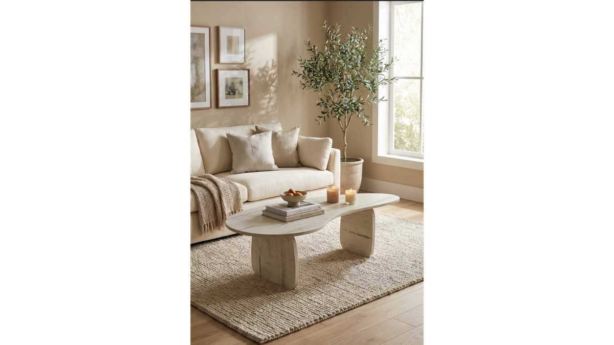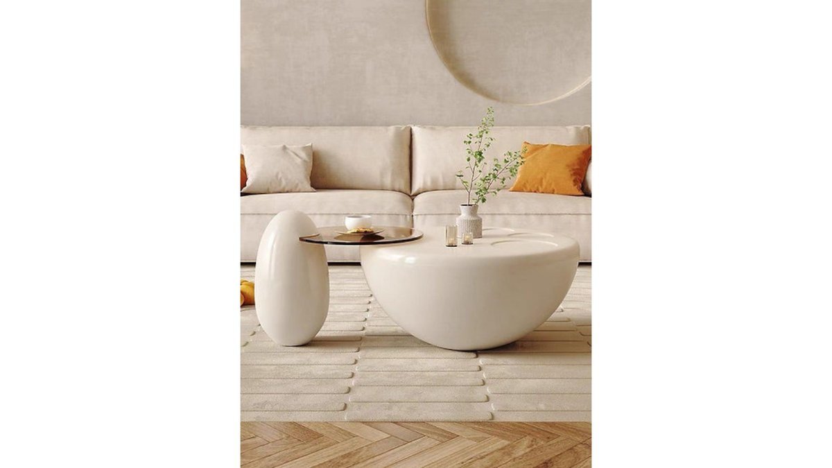 סט שולחנות איימורפי Wave Duo – עיצוב מודרני עם נוכחות טבעית | שמנת קלאסית