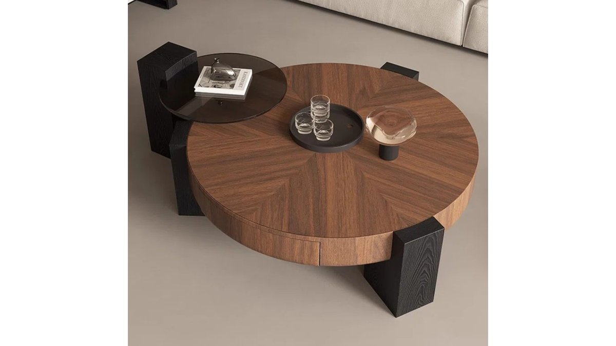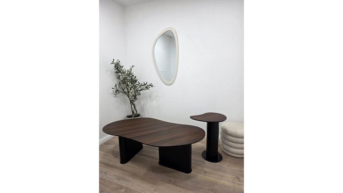 סט שולחנות איימורפי Wave Duo – עיצוב מודרני עם נוכחות טבעית | עץ אגוז כהה